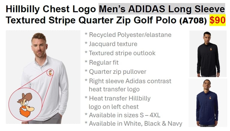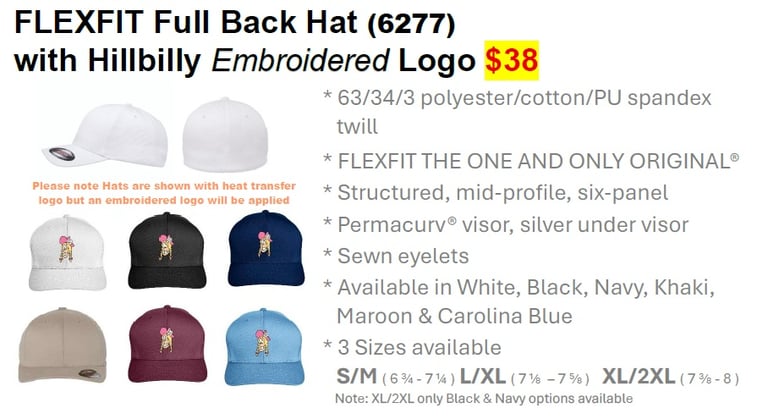 Orders can be made by February 28 to receive with payment at the HILLBILLIES CONVENTION… or… you can place your order at the HILLBILLIES CONVENTION on April 8. Final Order date is April 30.